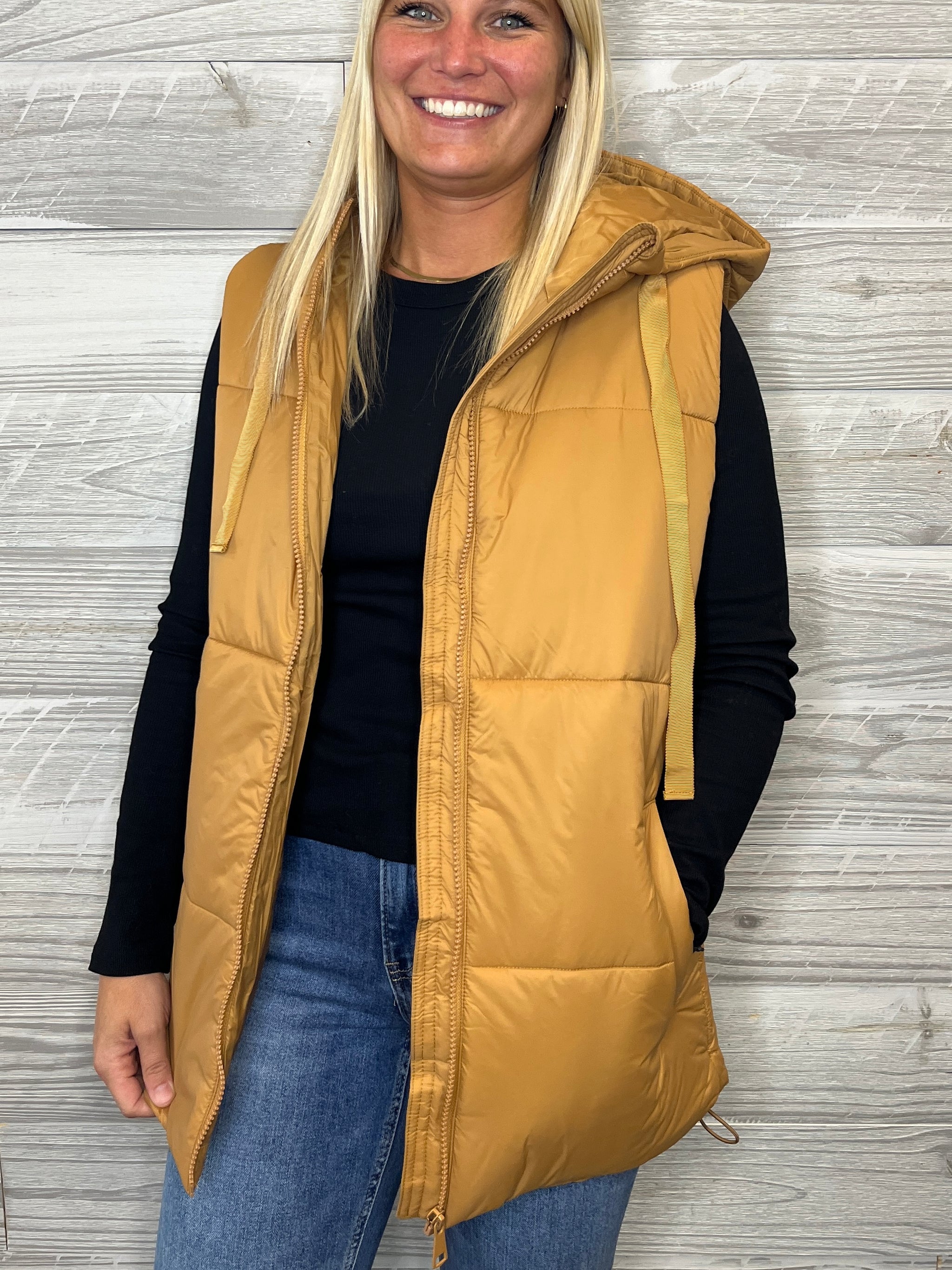 Stay cozy and stylish in this camel-colored oversized padded vest! With a high neck and hood, it’s perfect for chilly days when you want extra warmth without the bulk. Made from 100% nylon, it’s lightweight yet durable, featuring convenient zipper-closure front pockets to keep your hands toasty or stash your essentials. Perfect for layering and tackling fall adventures with a playful twist!