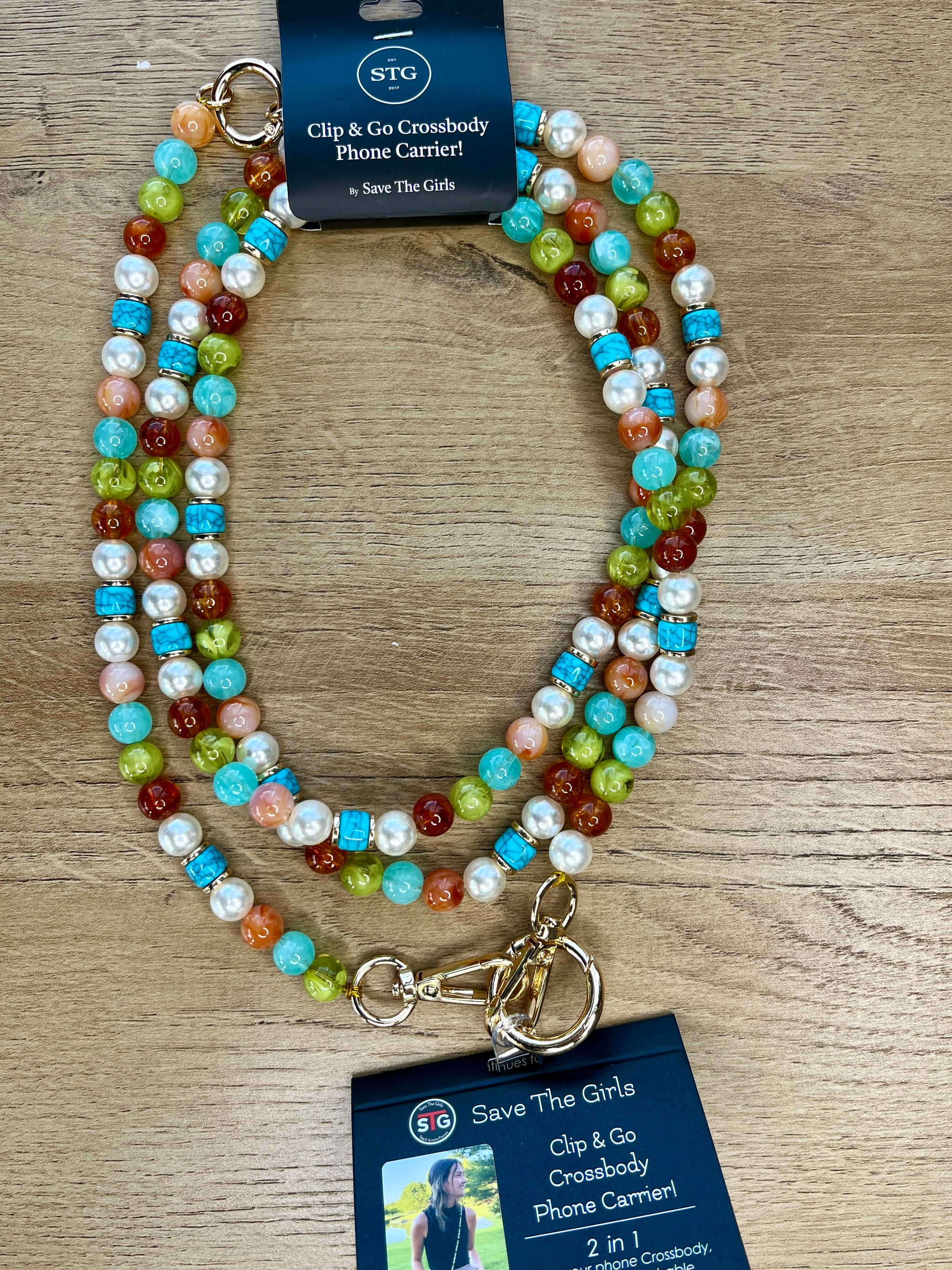 Keep your phone close and your style closer with the Save The Girls beaded chain phone holder. Featuring a vibrant beaded chain and a secure phone adaptor, it’s the perfect playful accessory to carry your phone hands-free while adding a pop of fun to any outfit. Ideal for those who want convenience without compromising flair!
