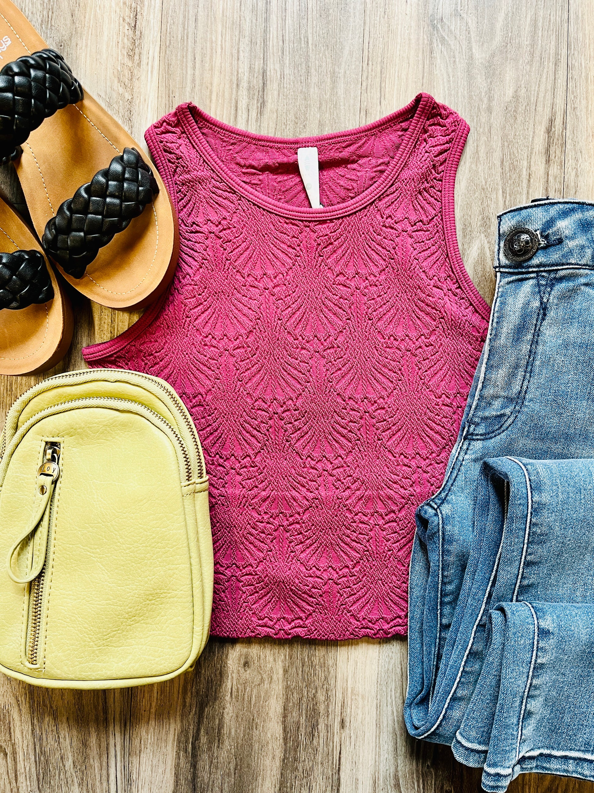 Get ready for some cute and quirky style with our Donnie Crochet Crop Top. This lined top features a racer back design and comes in multiple colors to suit any mood. Perfect for adding a fun and playful touch to any outfit. (Warning: may cause excessive compliments and outfit envy!).